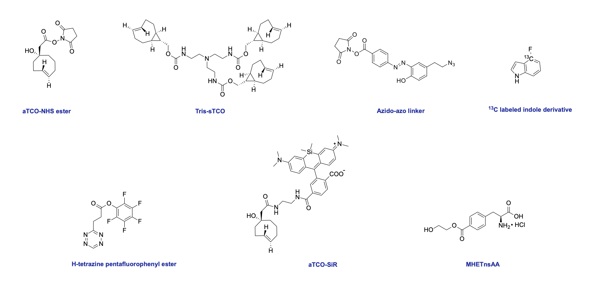 Bioorthogonal handles including azide/ alkyne, TCOs, tetrazines, dihydrotetrazines